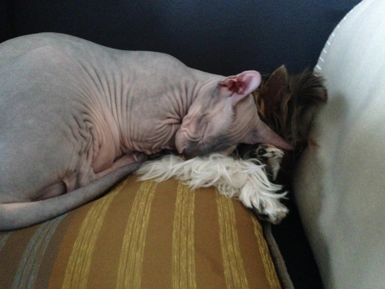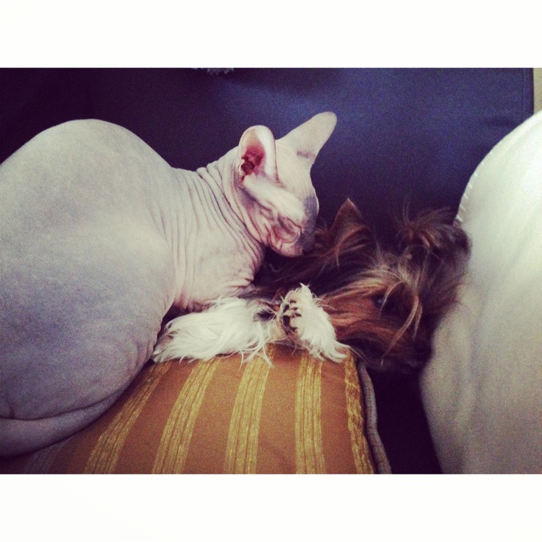 Наши любимцы!Зверята мои спят всегда почти вместе!