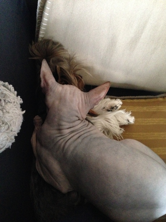 К сожалению ,пока временно ночью Лю и Мотя с нами не спят из-за моей аллергии((( Начался контактный дерматит по всему телу,больше руки,причина не совсем ясна,11 лет его не было в таком виде как сейчас...лечение не помогает