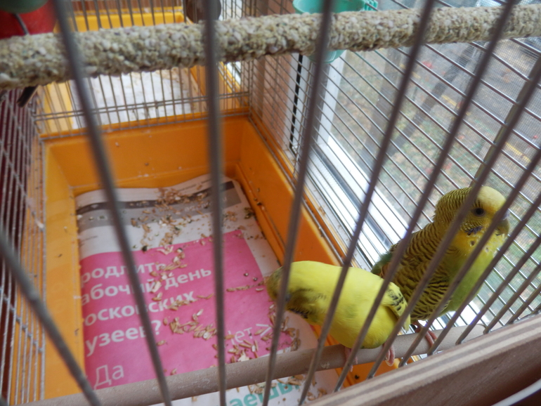 А у нас теперь еще новые друзья живут) здесь девочка их пристраивала, отдала их в нашу большую семью)) а как мальчик поет, чудо)) а девочка очень контактная.