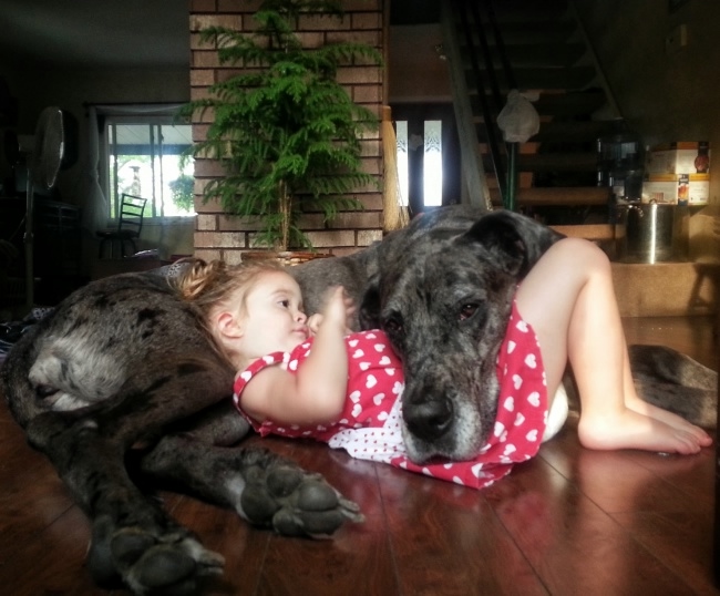 Животные вообще детей как-то по-особенному воспринимают, если я кошке руку на хвост положу, то она мне сразу лапой сдачу дает (это когда она хвостом начинает во все стороны мотать, показывая, свое недовольство), а когда дочурка ее хватает, то даже звука не издает.