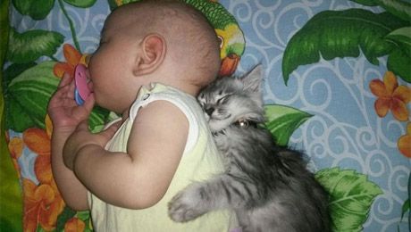 Какие чудесные фото. А наш котёнок не любит ребёнка - шипит на него и шарахается. Так жалко