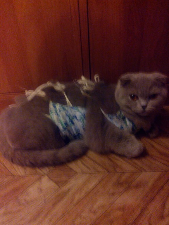 Да, я уже перевязала попонку, причем наша киса даже не шелохнулась, а стояла как вкопанная.... не похоже на нее совсем.