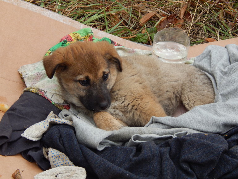 Помощь животным!ДД! Вчера мужу под гараж подкинули маленького щеночка!!! Что-то с лапками у него, может, переехали((((((Муж отнес ему попить, покушать, накрыл тряпками! С утра малыш был уже пободрее! Сегодня свозили его в ветеренарку, там сказали, что перелома нет, но снимок нужно сделать! К сожалению, оставить его себе мы не имеем возможности, да и , если честно, на лечение песика тоже денег нет.... Но очень жалко его!!! ОН такой хороший!!!!Может, кто знает приюты для животных в Воронеже? Или найдется кто захочет забрать песика себе...