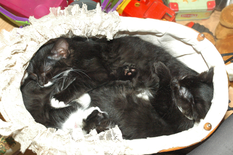 Были вручены соседями по даче, со словами:"Ну че, этих пристроите или топлю?". Люди с высшим образованием, считающие что если кошку кастрировать - но она многое в жизни потеряет, смысл жизни и главное удовольствие. Поэтому, лучше котят топить каждое лето. Вот как то так, в нашей жизни, все набекрень.