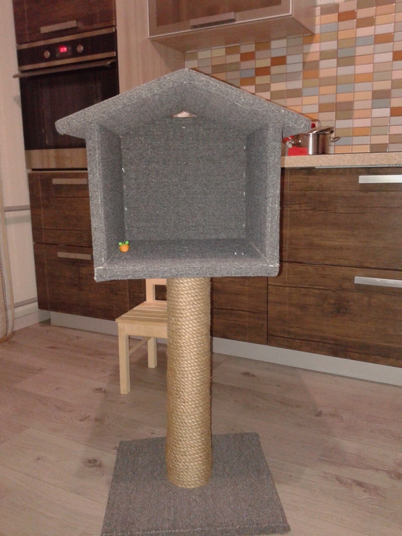крайне неустойчивый домик при разбеге кошка просто упадет вместе с этим домом. у меня к потолку привинчинную стойку сносят,а тут... надо низ утяжелять 100%