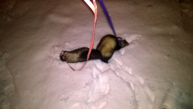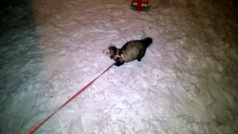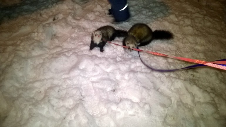 Вынесла на улицу, опустила на снег и они начали играть. Мы их не приучали)) Они даже любят больше зимой гулять. Летом в переноске прячутся