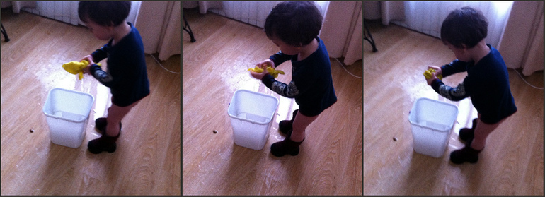 И, не унывая, под передачу, которую я жду неделю, и под которую хотела разлечься на диване и погрызть яблоко, мы с Леньком полчасика собирали воду.