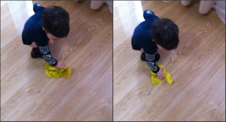 Надо похвалить Сережку, который 2 года назад перестилал полы в комнате с нуля (возводили лаги, доски, утеплитель, фанеру и ламинат) - уровень пола он выдержал на 5+. Вода растеклась на 70-80% поверхности ровным слоем)).