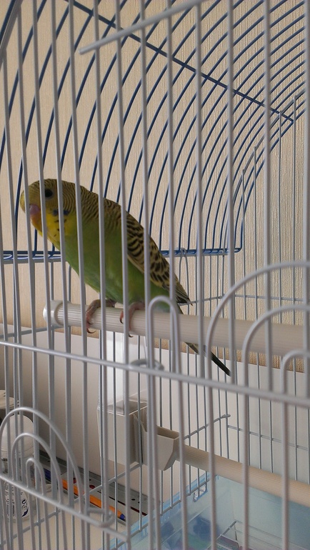 Спасибо!) Клетка у нас открыта когда светло и пернатый может ориентироваться в пространстве, т.е. целый день, а вечером он залетает и мы его закрываем. А сейчас у нас ещё и подружка появилась, теперь совсем весело)