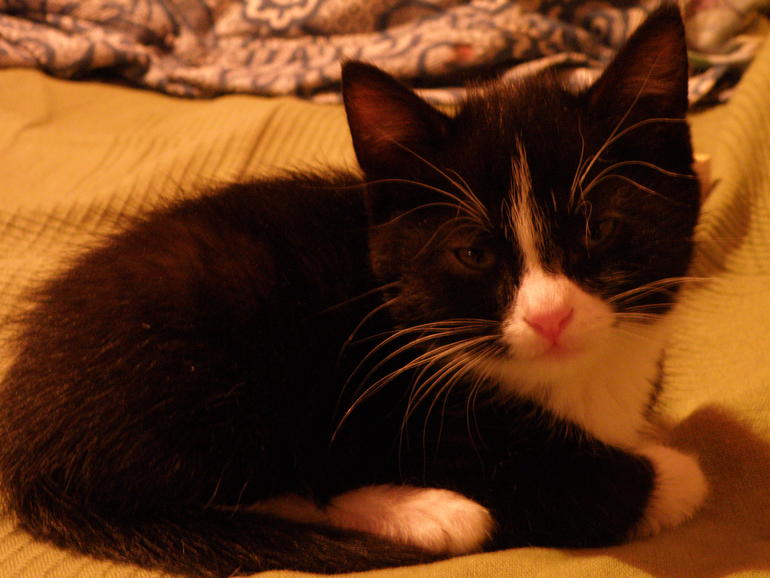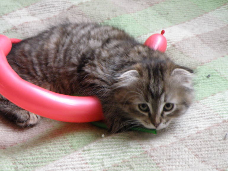 Он конечно играет и с удовольствием борется с сестрой, но видно, что он явно менее активный и, когда подрастет, с огромным удовольствием будет валяться весь день на диване кверху пузом. Котик очень плотно сбитый, с необычной шерстью, похоже, что унаследовал от предполагаемого папочки гиппоаллергенную шерсть - она несколько жестче обычной, в первый месяц жизни он был похож на валенок =) сейчас отличие в структуре шерсти не сильно бросается в глаза.