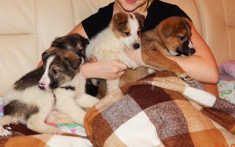 Они ждут своего хозяина (бесплатно)Самые добрые и любящие ручки ищут четыре очаровательных щенка! Три девочки и один мальчик с разноцветным носиком. Возраст почти 2,5 месяца. Умные, послушные и игривые малыши, приучены к пелёнке. Отлично ладят с детьми, кошками и собаками (проверенно на своих). Кушают натуральную пищу (каша + мясо + овощи и молочные продукты). Здоровые, обработаны от внешних и внутренних паразитов, оформлен ветпаспорт. Отдаю щенков исключительно в добрые, ответственные руки, желательно опытные. Не для вольерного содержания на цепи! Будут отлично ладить с другой собакой в семье. Пишите, звоните, всё подробно расскажу про малышей. Договор, рекомендации, памятка по уходу и содержанию. Фото и видео вышлю.