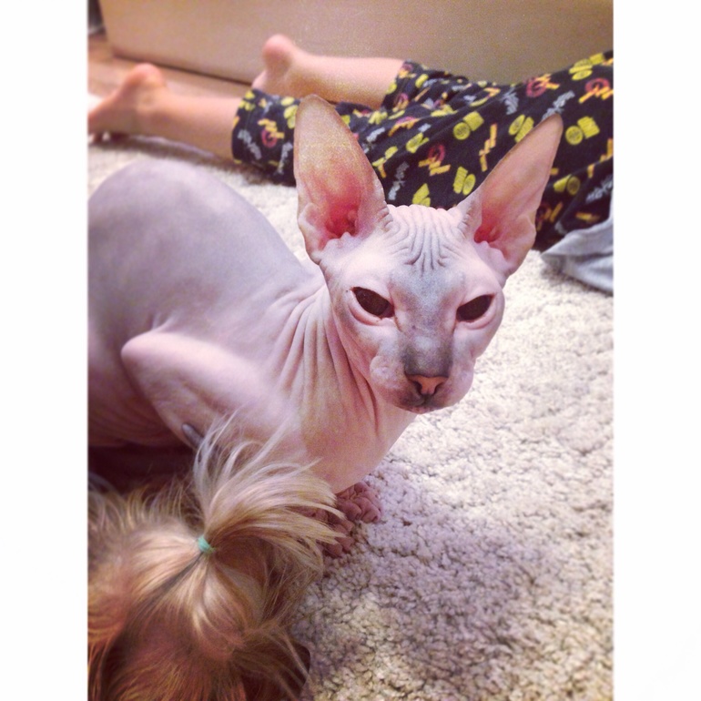 поздравляю)))))теперь лю не злю а опять добрая кошка))))у меня моя орет ходит...все никак не стерилизуем ее а надо. а микки коровушка взвесила ее сегодня 3400 такая большая собакевична выросла)) ходит кошку пресует. она к ней пристраивается будто мальчик и иногда стала лапу пытаться приподнять когда писает..во клинит даму....устроили тут лезби шоу кароче они