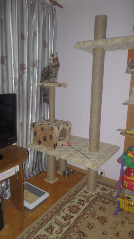 потом на самую верхотуру муж сделал лежанку, и это стало ее излюбленным местом - под самым потолком никто ее не мог достать!
