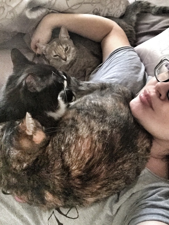 Мои две старшие, что на груди лежат, тоже жутко нелюдимые)) Единственный гомосапиенс, которого они любят, это я, да)) Но и я к ним соответственно отношусь, это ж мои доченьки!)