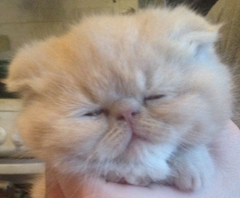 Хорошенький! А где родителей показывали? Интересно глянуть, как такой курнос получился.)Есть в кошачьем мире одна смешная фелинологическая организация. Они вяжут экзотов с фолдами и назвали эту породу флэппиг. Понятно, что это самодеятельность и такой породы не существует, кроме как в их системе.)))Ну это я так, просто для информации.