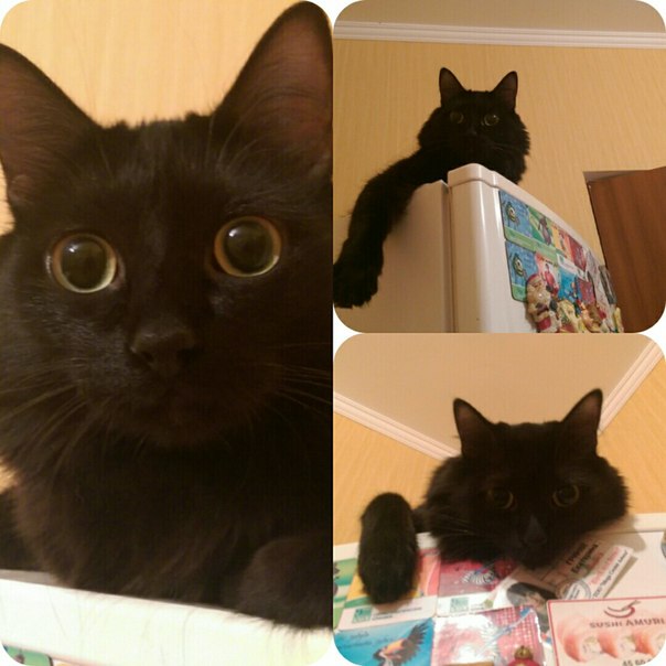 Наши любимцы!Вот так Дымчик охраняет холодильник)