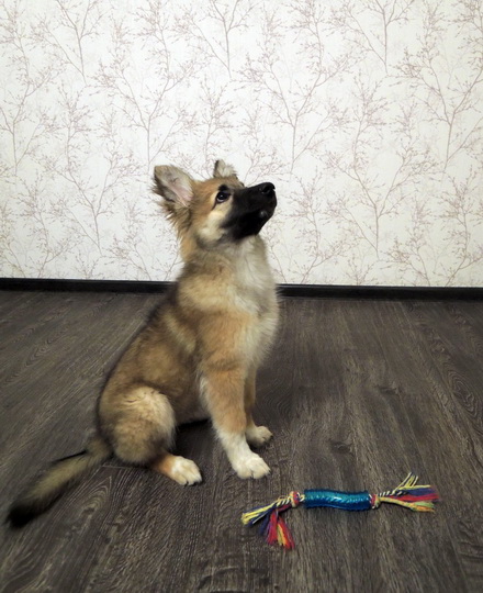 По всем параметрам обещает вырасти в среднего размера собаку.