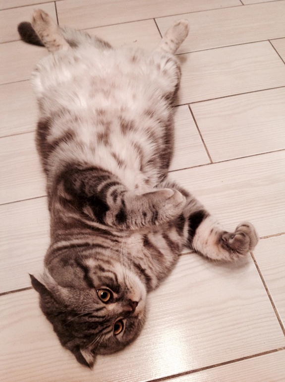 У нас точно так же делает наш Тошка, идет идет и раз на бок завалился и лапки кверху, еще подожмет их так смешно))) обожаем его, а уж его смешные позы)))