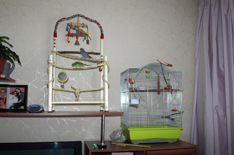 ПтицыПочти сделали, немного оборудования, природного материала из леса притащу еще,на боковые стенки надо сделать жерди. Качели скорее уберу в клетку, зеркало используется только из-за колокольчика. но его буду думать перевешивать.