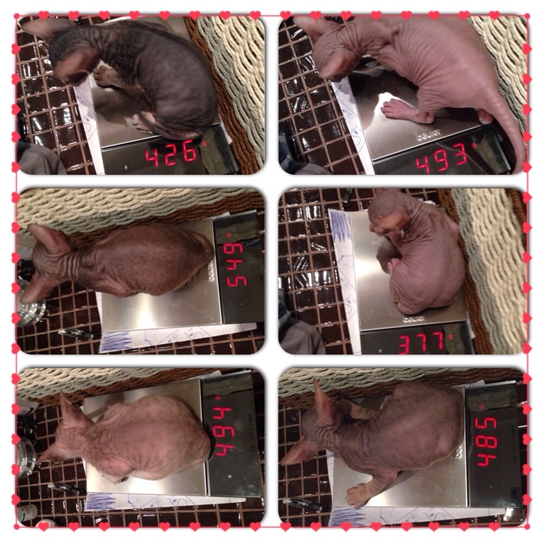Самый большой Маффин, затем Йода и Кокос в одном весе выступают ))) дальше Нюша идет, она молодец сама ест первая из миски и больше других , за ней Сонька и самая маленькая Нюся-малюся или иногда зову ее кошкой -блошкой )))))