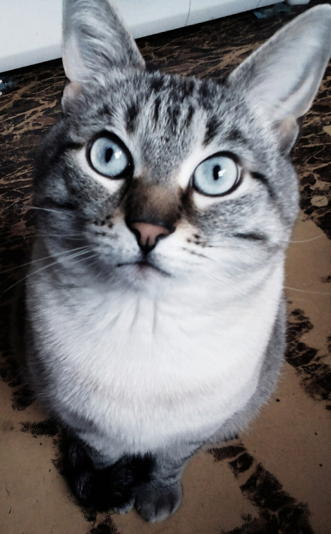 Уже шестой день с нами живёт наш Алекс.Как ни странно,но ,,авторитетом,,он выбрал именно меня)С первого дня ходит за мной хвостиком,спит со мной,а из туалетной или ванной комнаты,верно ждёт под дверью!