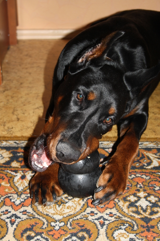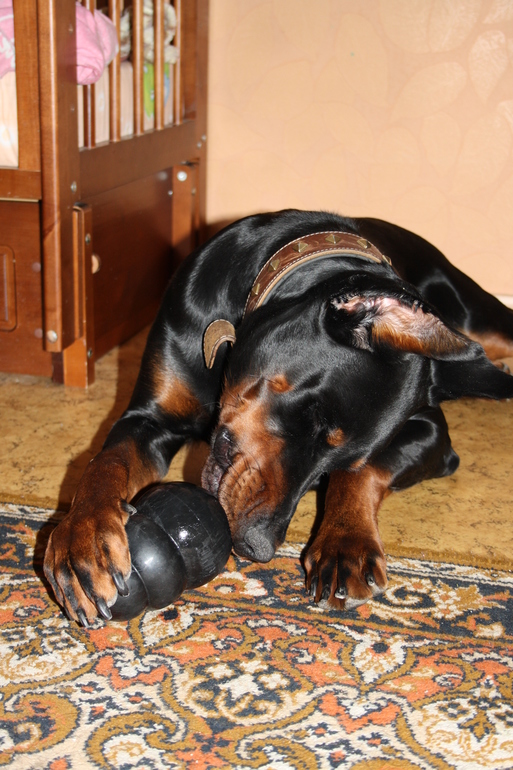 Собаки. Болезни, прививки, советы по уходуДоброе утро всем! Хочу показать вам нашу любимую супер игрушку! Я считаю это просто находка, по крайней мере для меня и моего собакевича! Моя подруга, которая живет в Америке прислала нам эту игруху на первый юбилей Агата! Это фирма Конг, раньше эти игрушки продавали в Москве, а теперь перестали. Когда я ухожу из дома, то набиваю во внутрь всяких вкусняшек и собака занята надолго, пока все не достанет оттуда, а это очень сложно! Конг очень прочный, его почти невозможно разгрызть. Ну и прилагаю фото))