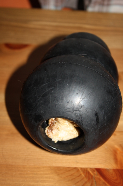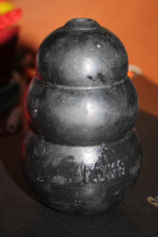 Конг продается и сейчас))Еще разные вариации конга продаются) туда тоже засовывать лакомства можно. Я вижу у Вас легкое засунуто, а что еще Вы кладете туда?P.S. Агат просто красавчик!