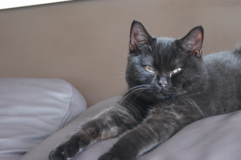 Интересно он так лежит у вас. Мой никогда так лапы вперед не вытягивает, только если на спине спит......может пузо ему мешает )))