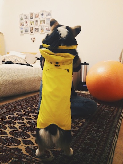 Наши любимцы!Купили нашему сокровищу первый дождевик :) С погодами, которые нынче стоят и нашими короткими лапами, замучаешься дважды в день вымывать песок из шерсти на пузе.