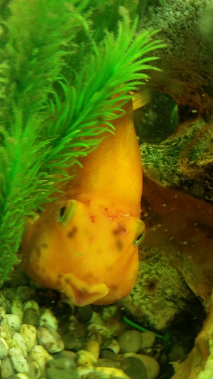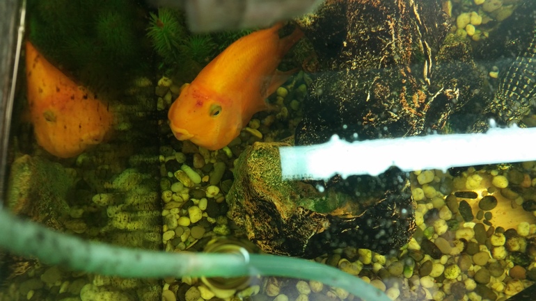 Болезни любимцевПодскажите что с рыбкой. Больна или собрат по акве так ободрал? В аквариуме только попугайчики 2шт, и сомики. Вторая рыбка драчунья редкостная, многих извел. Я думала, что он так покусал или ободрал, часто дерутся и он его под корягу загоняет, выплыть не дает, сама часто наблюдала как он ртом вцепляется. А муж считает что больна и что это язвы.. Девочки, может кто разбирается в болезнях и подскажет что с рыбкой?
