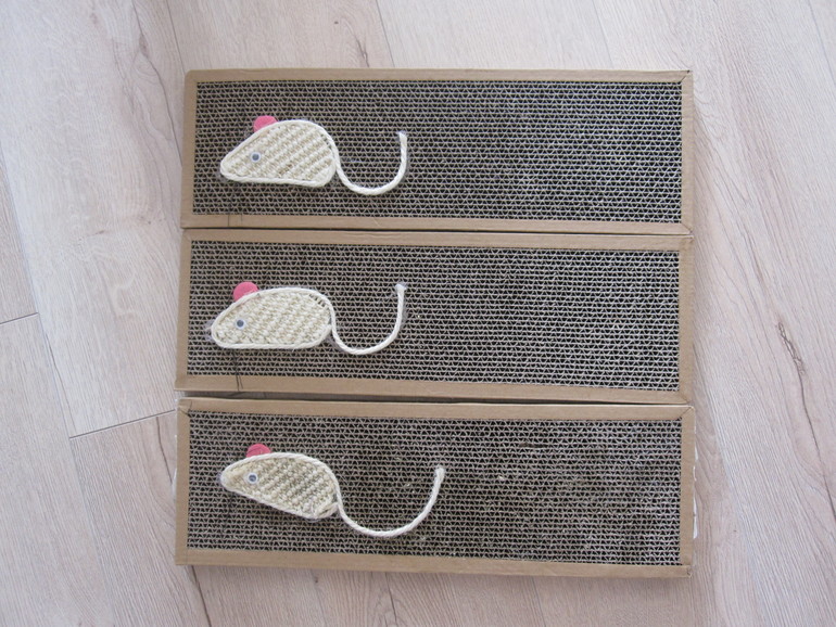 какие симпатичные))) а я тоже поэкономила на когтеточке. Купила в хозяйственном магазине за 100руб несколько метром веревки, которой обтянуты все когтедралки обычно... и намотала ее вокруг ножки стола, коту нравится)))