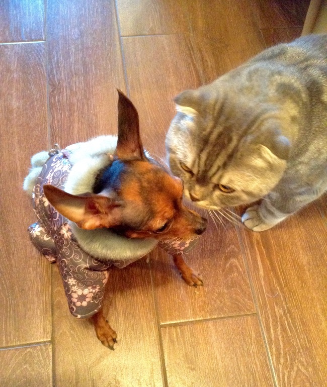 собака 1,5-2 кг, а кот последний раз был 6 кг))))))))))) так что, кот больше в 3 раза