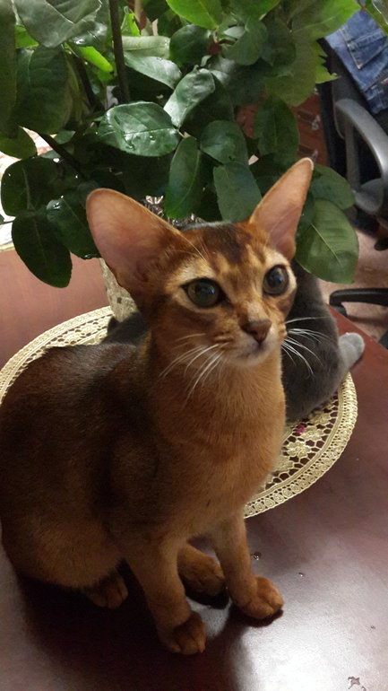 А у нас мальчуган абиссин) мой любимый будильник, благодаря его мурчанью по утрам просыпаюсь во время! Дворянка у вас хороших кровей!!!
