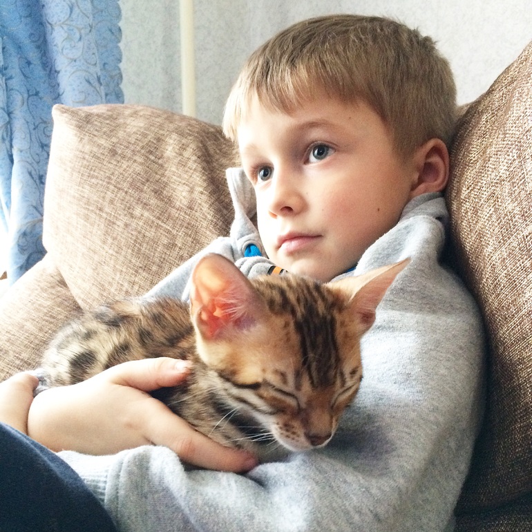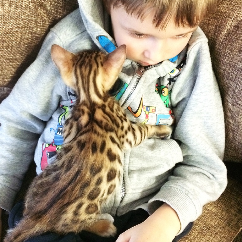 Наши любимцы!Привет всем! Очень долго мы решались ,заводить ли кота, никогда у нас не было животных . Сын очень просил котенка, проходили дни,недели... С мужем обсуждали что возьмем котенка бесплатно, кто отдает даром... Но муж решил сделать нам сюрприз, принес однажды вечером пятнистое чудо)))) наш первый котик-бенгальский .