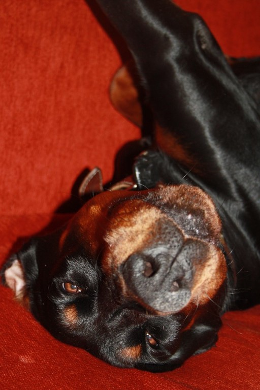 Мой доберман в душе чувствует себя кошечкой))) лезет на колени и пытается весь свернуться калачиком! Один раз он такое учудил в ветеринарке, все со смеху попадали)))