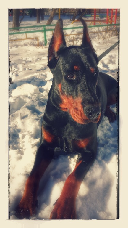 Да уж, габариты не те :))) Доберманчик потяжклее будет :) Ещё знаю питбуля который целоваться любит и обниматься, особенно с незнакомыми людьми :) ну вот любит собачка всех без разбора :)