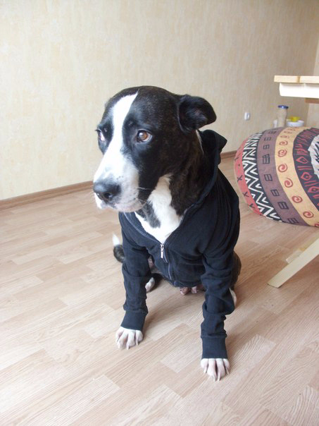 уши прижала потому что только недавно к нам в дом попала, боялась всего)) а без кофточки гулять не ходили тогда — мерзла очень)