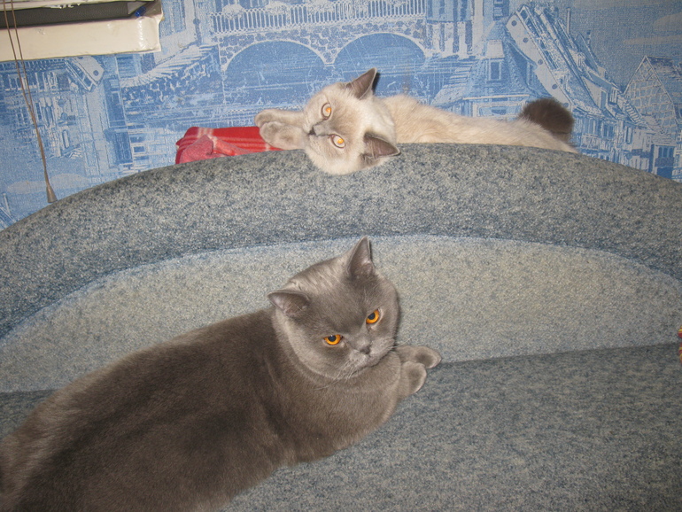 Красавцы!!! Просто обалденные!!! Кошка просто ещё молоденькая. Вот повзрослеет, возмужает. Будет как кот спокойная, толстая и рассудительная. Вот тогда и будете гордиться обеими. Будут сидеть и вместе читать)))