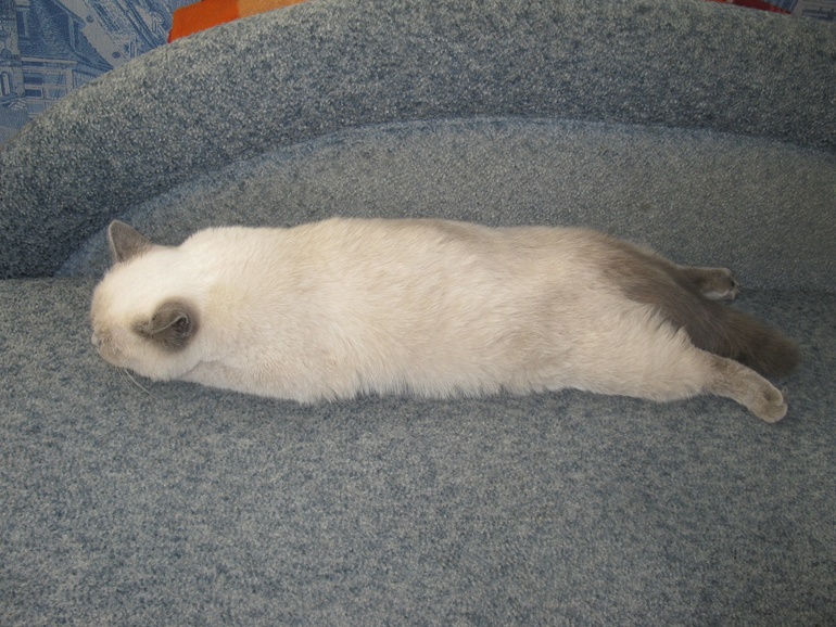 ага, ну кот тоже так любит спать, это вообще смешно — такая "лося" и вытянется на весь диван...