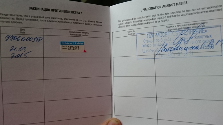 Собаке 27 марта 4 месяца. Бешенства у неё не стояло. Сказала что с нобиваком в Питере был напряг после НГ, да и такую прививку она не ставит собаке пока она не наберет 700 грамм (и сама яко бы сегодня всех своих повезла на эту прививку, во что я уже не особо верю)