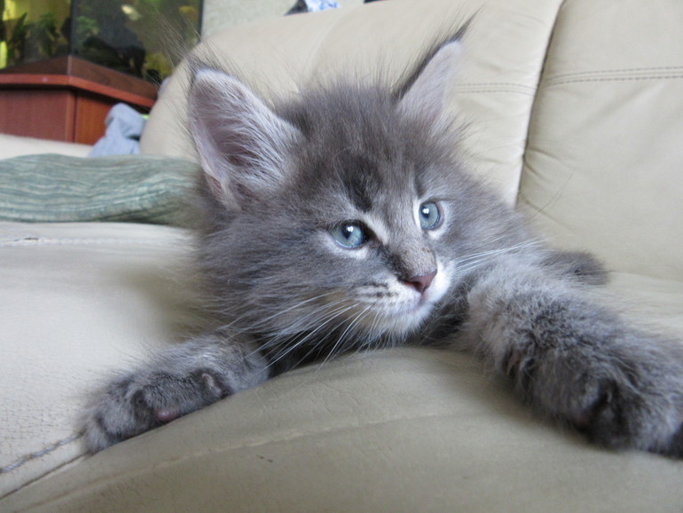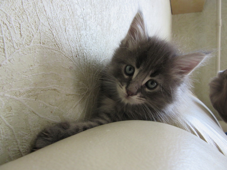 ) посмотрим, каких размеров вырастет. она помесь мейкуна с сибиряком. наша старушка-кошка в шоке)