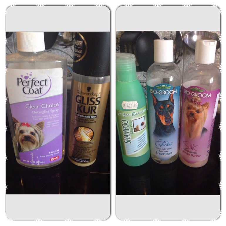 Спреи для расчесывания использую тех же фирм, но как то раз внесла открытие для себя - спрей Глис кур, отлично подходит не только людям,от него долго сохраняется вкусный запах , нет перхоти и идеально подходит для расчесывания шерсти , особенно длинной!