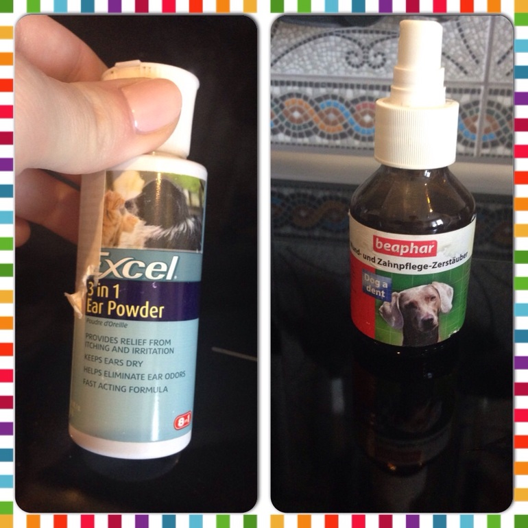 Их надо стричь и выщипывать, повторюсь еще раз, дело 5 ти минутное, зато залог здоровых, не вонючих ушей! Еще я иногда использую присыпку 8 в 1, что на фото выше( слева) мне очень нравится ее запах, но он на любителя сразу предупрежу)))