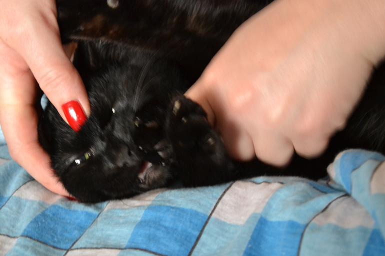 Стабильно, в 5-6 часов утра он просыпается, и начинает по-тихоньку будить всех кто спит, чтобы его покормили. И он интересно это делает, он не мяукает на всю квартиру, он начинает облизывать, если же облизывание не помогает, начинает покусывать тебя за нос, и следом же облизывает, тут хочешь не хочешь встаёшь, как можно устоять от таких ласк? И идёшь сквозь сон, собирая все косяки, на кухню...