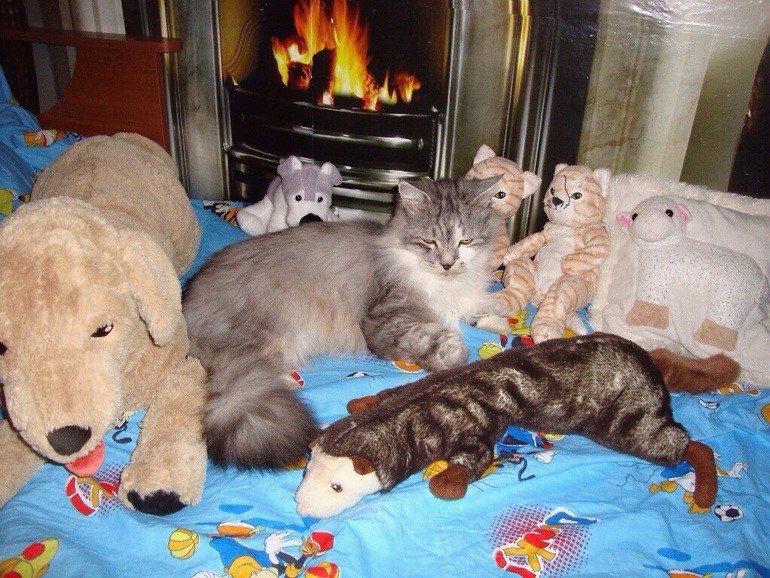Появился он у нас 13 лет назад , маленьким котёнком , ( кот наш самый обычный от простой дворовой кошки ) за все свои почтенные года никого не поцарапал , ведёт себя достойно не рвёт , не метит , обожает детей и животных которые появляются у нас в доме .