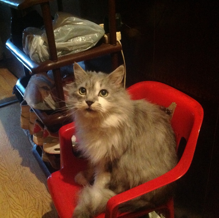 Ещё наш кот очень любит провожать Серёгу в школу , сядет около него в коридоре и мурлычет ему , как только Серж уходит в школу , кот сразу занимает его место , "почётный детский стульчик "