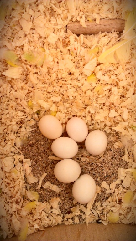Ой какая прелесть! А у нас мамка на яйцах пока, 4 яйца, 3 оплоды. Тоже ждууу.У вас наверное зелененькие будут :).