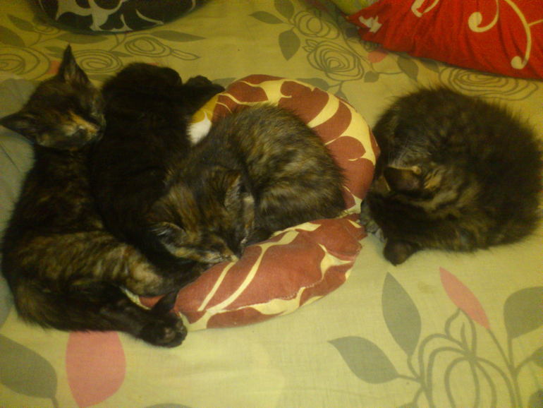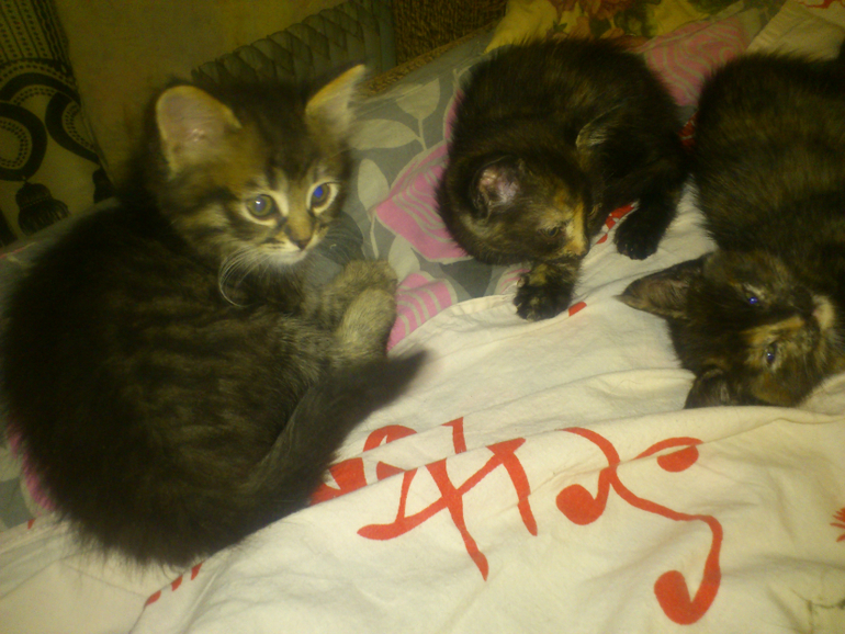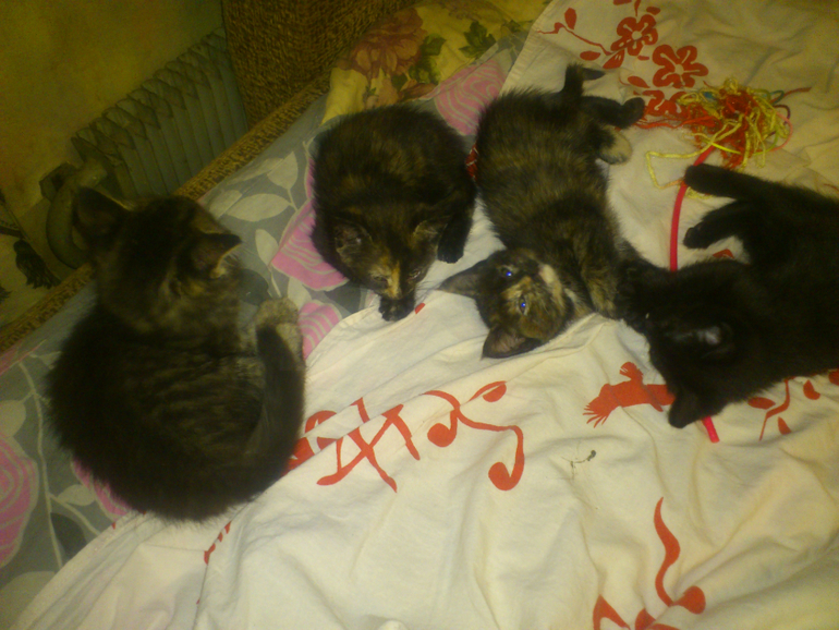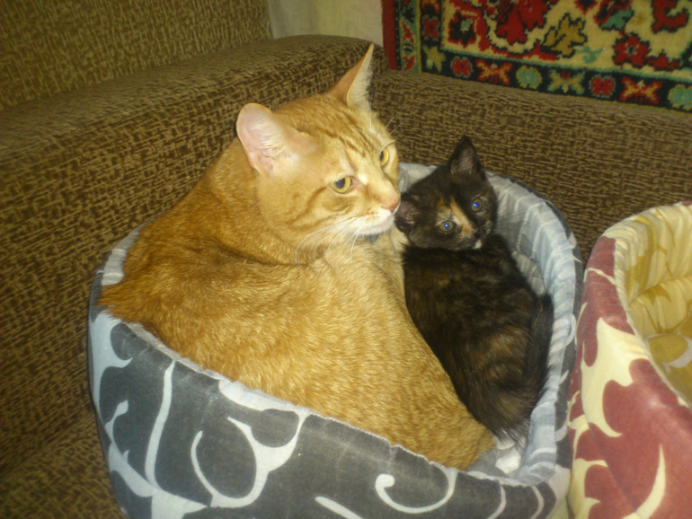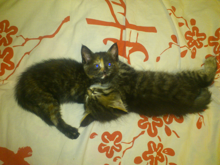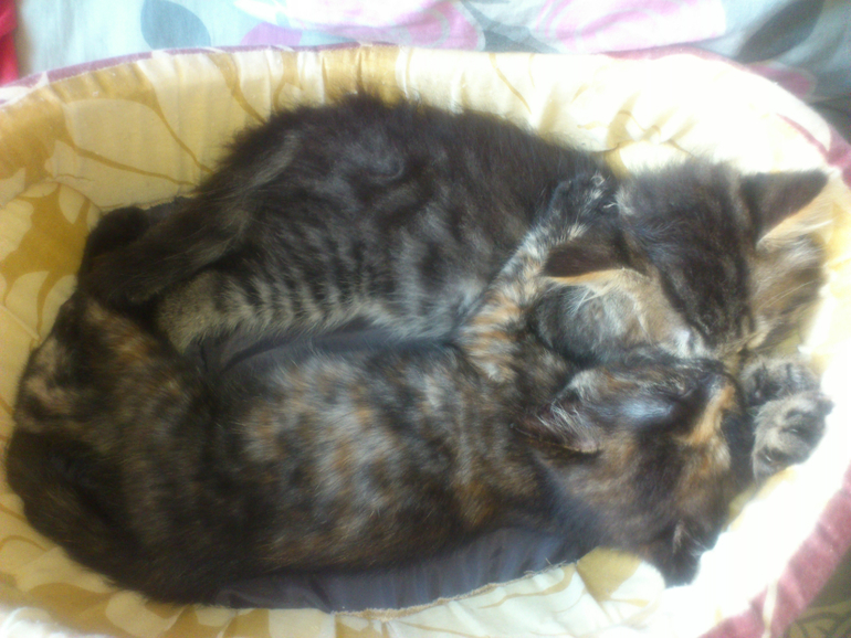 2 девочки-черепашки: посветлее заводила и игрунья, ласковая, сама проситься на ручки; потемнее очень спокойная, милая и нежная.