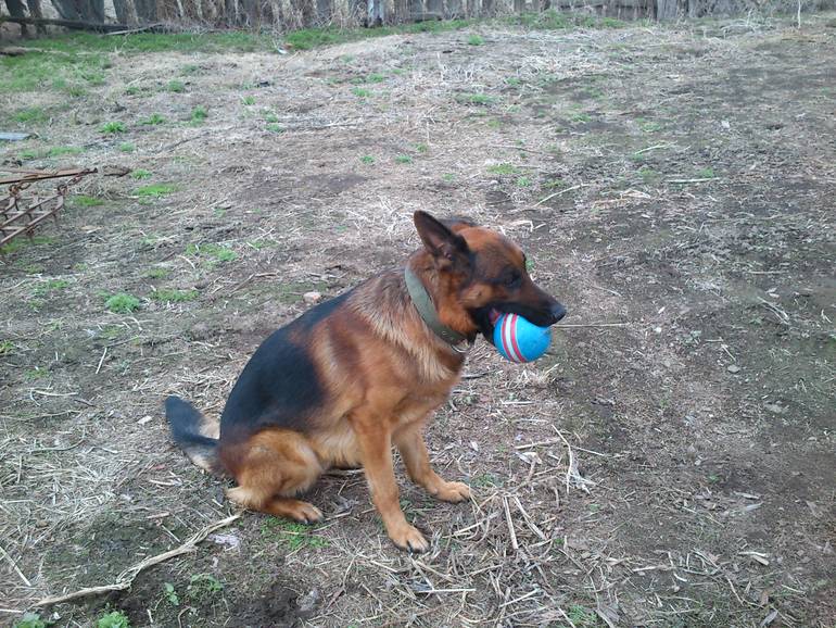 ...он здесь такой грустненький... задумчивый...но с мячиком..))А к Тёмочке не ревнует, как думаешь..?
