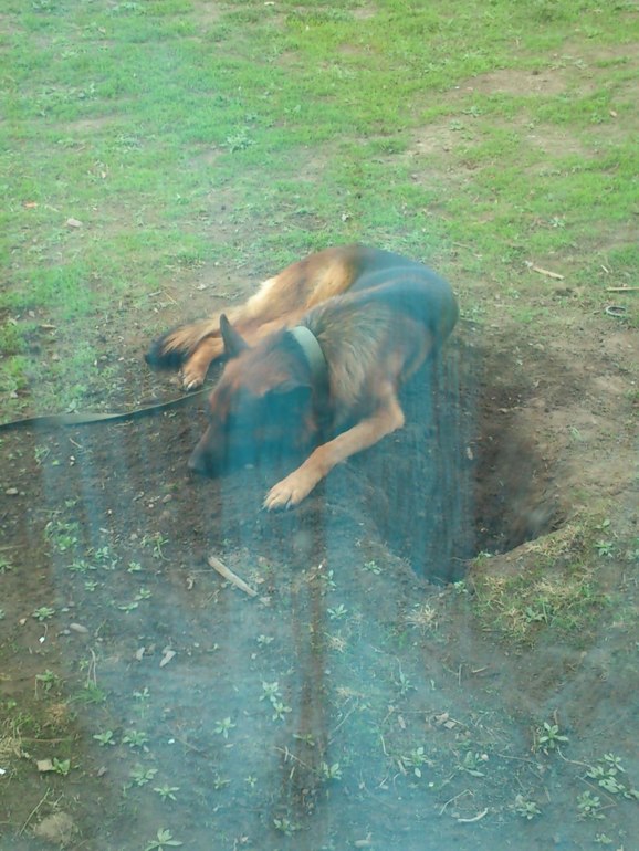 гы) наша мелкая дворовая такой окоп на днях вырыла.... у меня на клумбе((( теперь в вольере сидит...